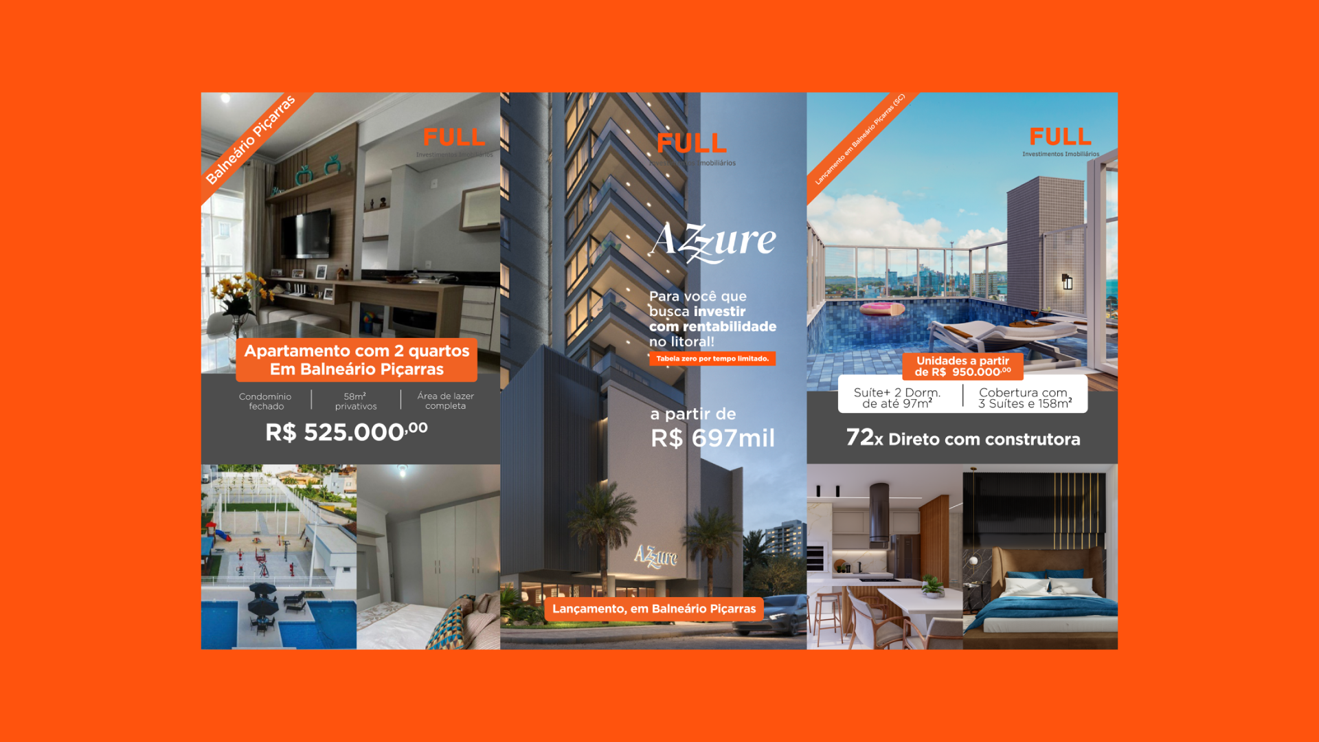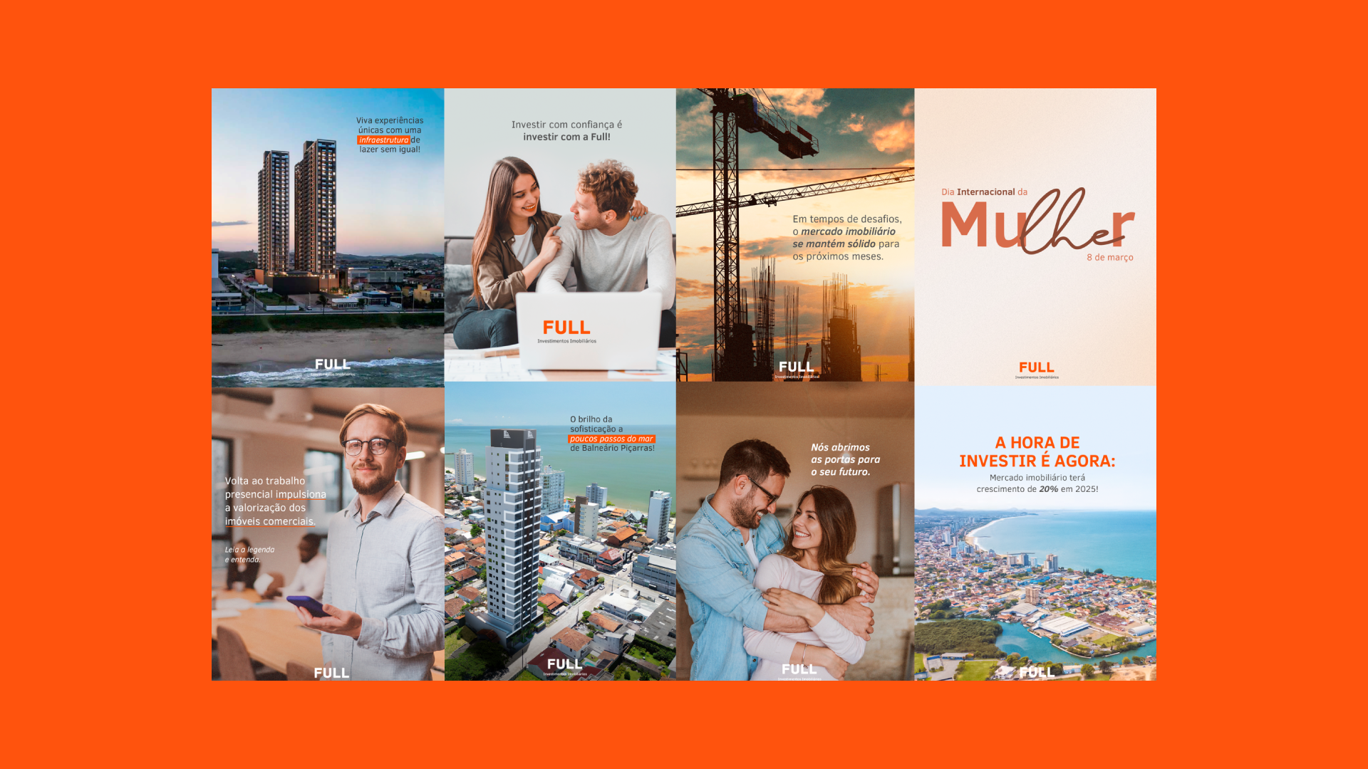 Criamos uma identidade visual marcante e alinhada ao segmento de alto padrão, além de definir a personalidade e os pilares estratégicos da marca. A Full passou a se comunicar de forma coerente, profissional e com diferenciação frente aos concorrentes.