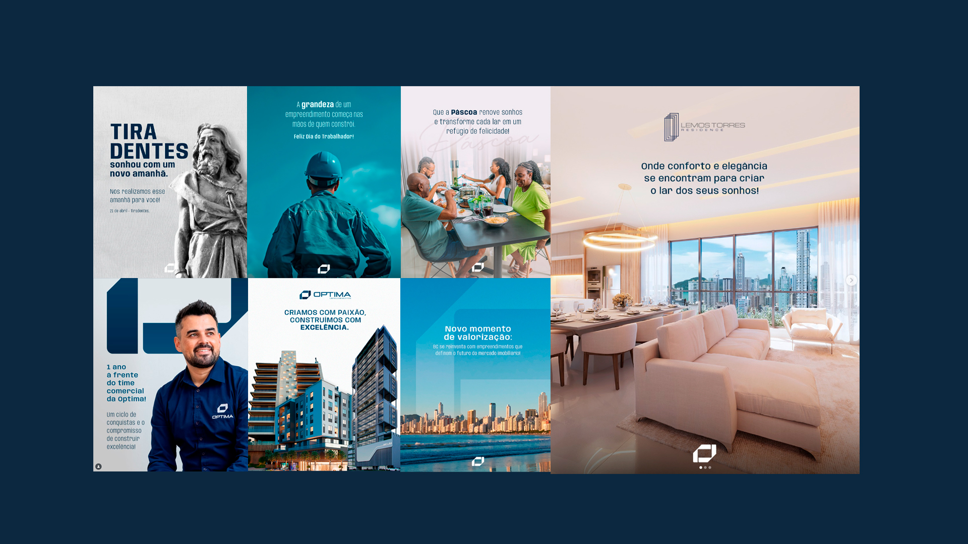 A Óptima Construtora iniciou sua atuação no competitivo mercado de Balneário Camboriú e região sem presença digital, reconhecimento de marca ou histórico no setor. O principal desafio era posicionar a construtora como uma marca forte, confiável e desejada, construindo desde o zero sua percepção de valor — tanto institucional quanto nos lançamentos imobiliários.